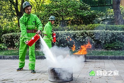 参与演习的消防员都是国际丽都社区的秩序维护员,他们在秩序维护员领队的命令下迅速集合待命,个个精神抖擞,喊着嘹亮的口号,跑步进场、稍息立正、蹲下起立、敬礼礼毕、正步走以军人般的雄姿进场。随着现场科瑞物业经理下令演习开始,秩序维护员以最快的速度穿上消防服、戴上安全帽,火速赶往火警发生处灭火。首先采取用灭火毯隔绝氧气助燃的灭火方式迅速熄灭火苗,但是不一会火苗再次燃起,他们马上使用灭火器彻底扑灭。矫健的步伐、敏捷的身手、默契的配合,充分展示了安保队伍的良好形象。