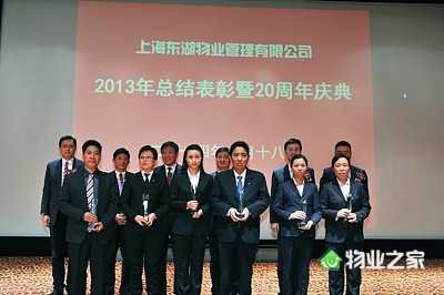 1月18日,东湖物业2013年总结表彰大会暨东湖物业20周年庆典在上海影城隆重举行。大会全面总结2013年取得的成绩和经验,对在2013年工作中做出突出贡献的先进集体和先进个人进行表彰。共同畅想东湖物业20年发展取得的成就及未来发展的希望和前景,号召并动员公司广大员工,开拓进取,抢抓机遇,奋力拼搏,为加快推进公司做强、做大的目标而努力奋斗。