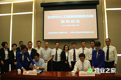 8月12日,上海世博中心工程维保服务合同在世博中心举行。上展集团副总裁、世博中心党委书记、总经理周德骏、上实物业董事长、总经理李胜来分别代表双方企业在合同上签字。该合同的签署,标志着上实物业在后世博物业管理服务工作的开启,成为上实物业在公众物业类型中又一标志性项目。