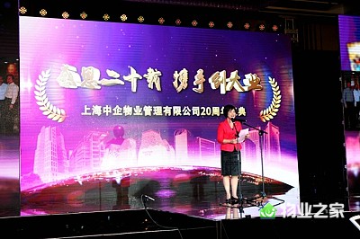 10月27日,中企物业举行感恩二十载 携手创大业20周年庆典,共同庆祝公司成立二十周年,整个会场洋溢着隆重、喜庆、欢快的节日气氛。市住建委、中物协、市物业协会领导和物业同行老总、中华企业、静安区政府职能部门有关领导、开发商、合作甲方代表、公司主管级以上管理人员、各服务中心员工代表出席了庆典活动。
