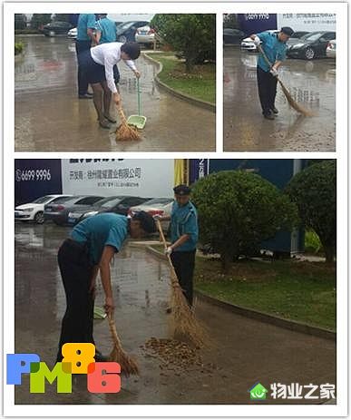 开元物业徐州区域提香湾案场员工冒雨清洗停车场
