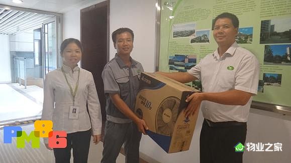 本月,开元物业办公区服务处设施部领班傅后清先生即将完婚,8月11日16:00分,海口区域公司工会特地申购遥控电风扇一台,以示公司对他们的祝福。