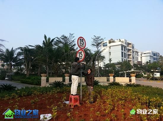 2015年1月22日,一大早小区负责人李柔萱经理便带领工作人员到指定地点开始动工设立限速标识牌。工作人员首先将原先种植的花草小心移开,在根据限速标识牌的安装标准开始挖开地面。等工作人员经过精密的测量深度后,才将标识牌立起固定,经过大家的齐心协力,限速标识牌终于顺利安装完毕。业主看到我们设立的标识牌后,表示对我们的贴心服务非常满意。