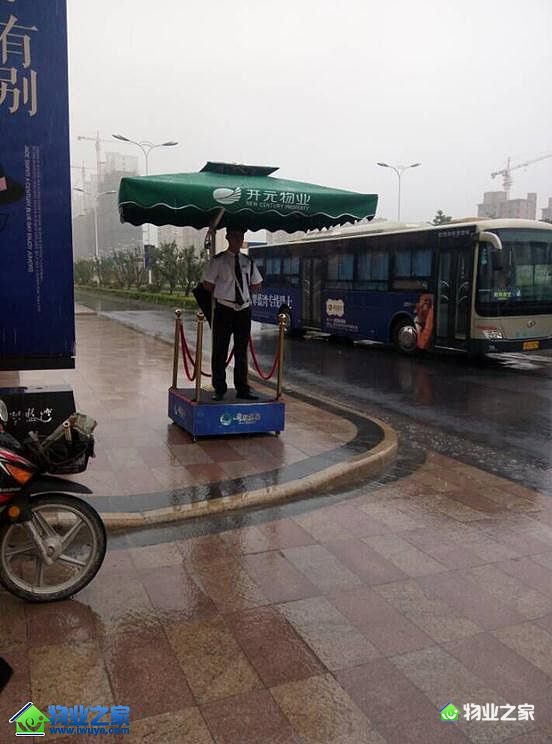 为了给客户提供正确的方向指引,翡翠蓝湾售楼处的安保在雨中站的笔直,并不时向来往的车辆行礼,得到客户的一致好评。