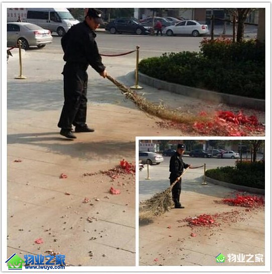 10月20日良辰吉日,开元物业东城丽景小区嫁娶迎新人少不了燃放几挂鞭炮,烘托气氛,主干道上遗留许多炮皮服务处及时派安保人员前去清理。