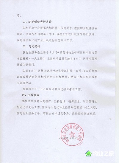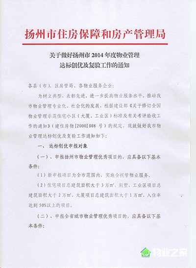 关于做好扬州市2014年度物业管理达标创优及复验工作的通知