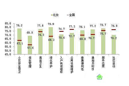 “停车管理全国水平为57.4分。北京地区表现已远高于全国水平。比较的看,北京地区这方面做得不错,至少在有限的空间内能物尽其用。”中国指数研究院分析师表示,“社区活动(70.2分)虽然高于停车管理(68.9分),但该项指标与全国平均水平(76.8分)差距较大,从行业的角度看,该方面对企业来说才真正具有较大挖掘空间。类似问题还有入户有偿维修和公共设施维护。如果企业仅仅只是根据自身调研结果做简单分析,未免“坐井观天”,很可能对决策造成误判。研究院8年以来一直坚持做好居民居住满意度普查,以此帮助企业在不同区域正确认识自身情况,这是一个非常重要的原因。”